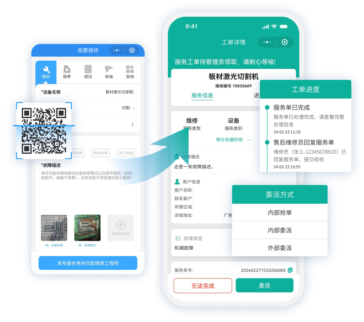 设备出现故障时,往往会因为电话报修听不清、派工周期长等情况,无法迅速响应客户报修问题,导致用户等待时间长,影响使用体验。