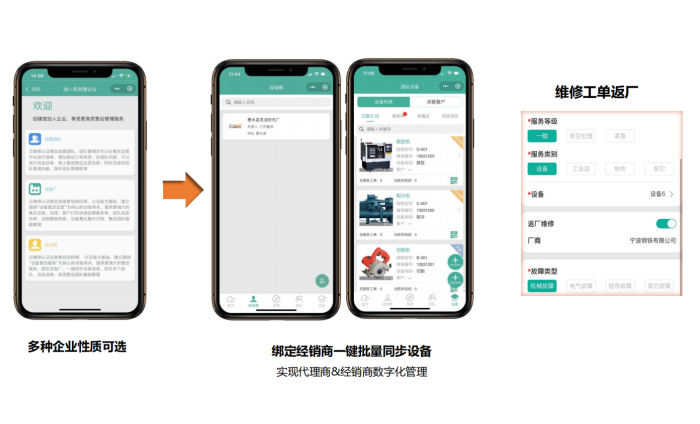 为设备制造商实现售后设备全生命周期管理,一机一码赋予售后设备资产数字化,一站式解决并掌握售后设备动态信息和一键报修、维护、保养,促进设备改良,便捷管理售后团队、经销商与客户服务,助力客户满意度、复购率、品牌影响力提升。